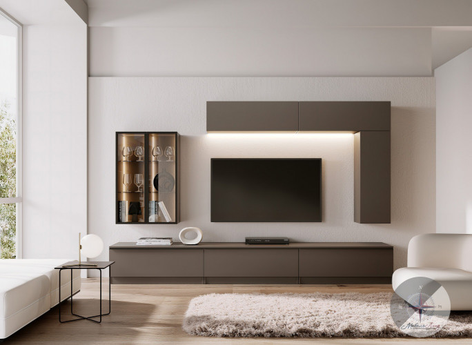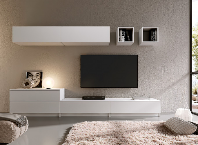 Складывая и сочетая отдельные мебельные элементы, словно конструктор – вы можете собрать свой вариант этой гостиной. Игра геометрических форм сделает помещение стильным, необычным и индивидуальным.