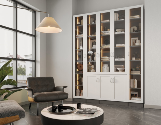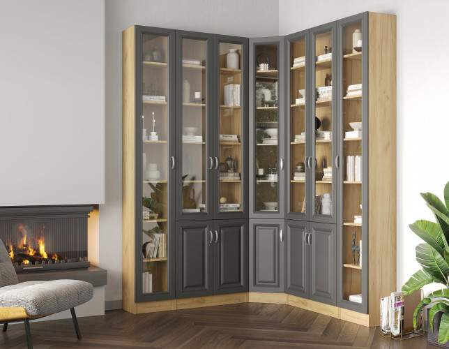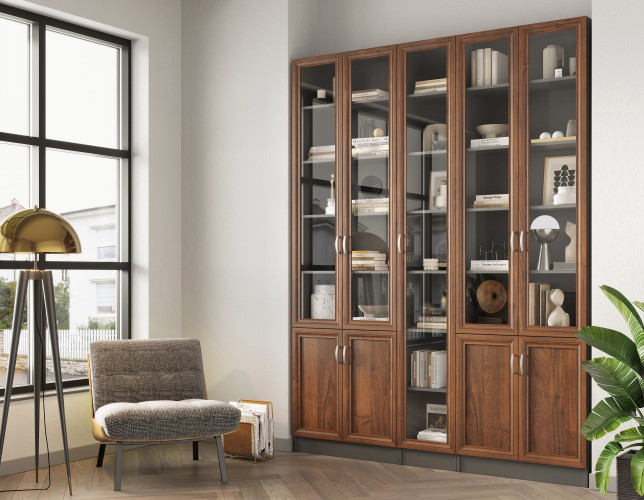 Вместительный книжный стеллаж, изготовленный из ДСП, подойдет как для солидной домашней библиотеки, так и для коллекции сувениров и памятных вещичек. Стеллаж выполнен в классическом стиле и удачно дополнит интерьер рабочего кабинета, гостиной или спальни.
