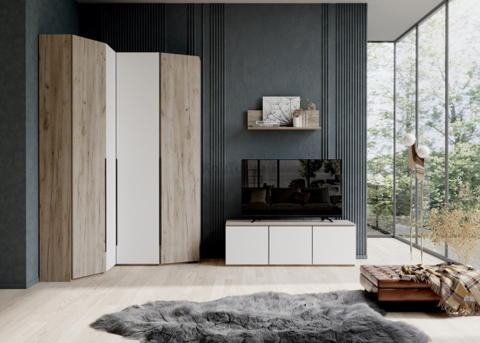 Один из основных трендов в мебельной индустрии – ничего лишнего. Именно этот посыл отражается в коллекции Лаунж. Лаконичный дизайн, строгие прямые фасады. На смену привычным ручкам пришли современные элегантные ручки-профиль. Часть модулей оснащена механизмами для открывания от нажатия без ручек. Новинкой предметного ряда является вместительный угловой шкаф.