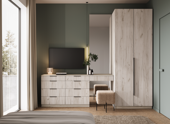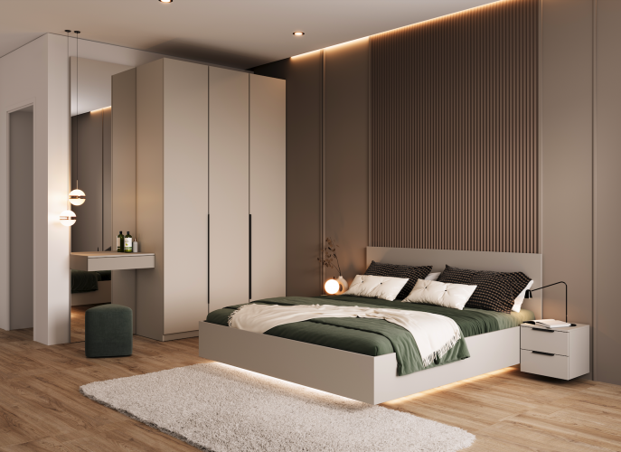 Коллекция для спальни «Меренга» — это идеальное сочетание легкости и стиля, позволяющее создать уникальную атмосферу уюта и гармонии. Вы можете выбрать как однотонные варианты, так и смелые сочетания цветов, что позволяет легко адаптировать интерьер.
